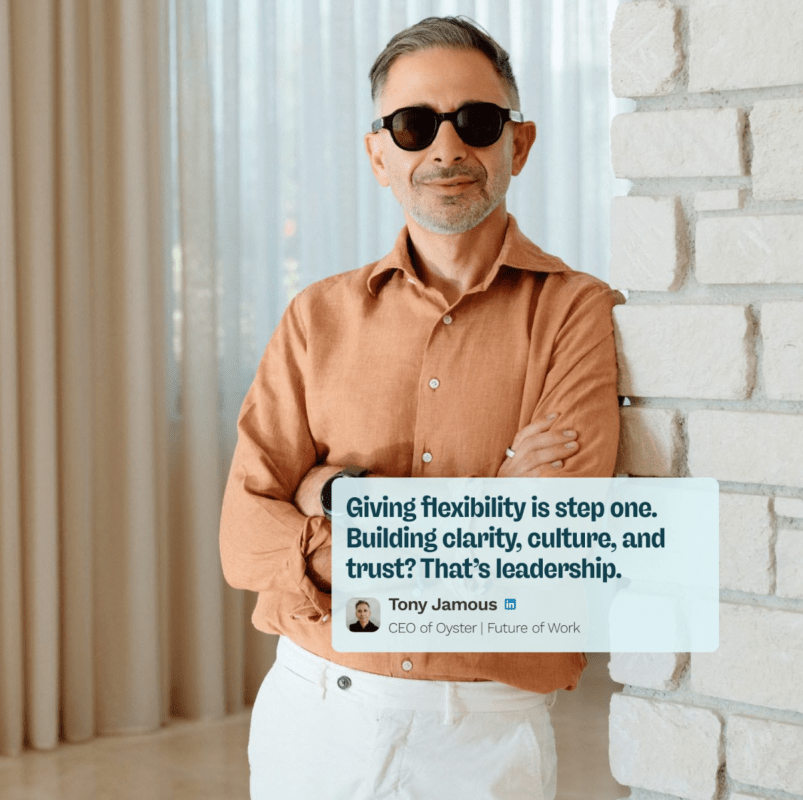 چیزی که برای من به عنوان یک رهبر کسب‌وکار الهام‌بخش است، این است که اویستر نه تنها به دیگران کمک می‌کند تا از راه دور استخدام کنند، بلکه خودشان نیز این کار را به بهترین شکل انجام می‌دهند و ارزش‌های خود را در عمل نشان می‌دهند.